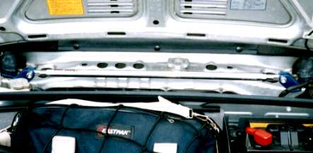 きっと効果が出ているのでしょう。乗り心地は、Ashの黄ビーより明らかに 悪い。(現在はサスを換えているため比較できないが、交換前のインプレで)。 突き上げがダイレクトになった。また細かく振動するようになった気がします。 おそらくボディーで吸収していた分がなくなったせいでしょう。 <タワーバーの連結部のボルトはしっかりと> 取り付けに関してですが、左右のタワー部とバーを結ぶところの凹6角ボルト (アーレンキー)はしっかりと締めたほうが効果がでます。わたくしははじめ10mm のアーレンキーが手元になく仮組みの状態で工具屋まで走ったとき。ぜんぜん補 強の効果が出ず、がっかりしていたが、工具を購入し本締めをしたら見違えるよう に剛性が上がった経験をしています。タワーバーはただの「つっかえ棒」ではなく、 前後、左右、上下のあらゆる方向に対してもしっかりと形状をキープできるように しておくべきです。 |
