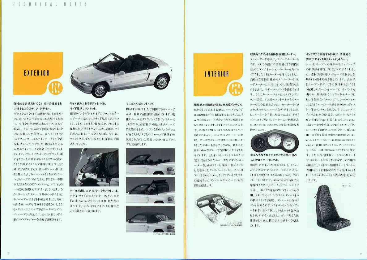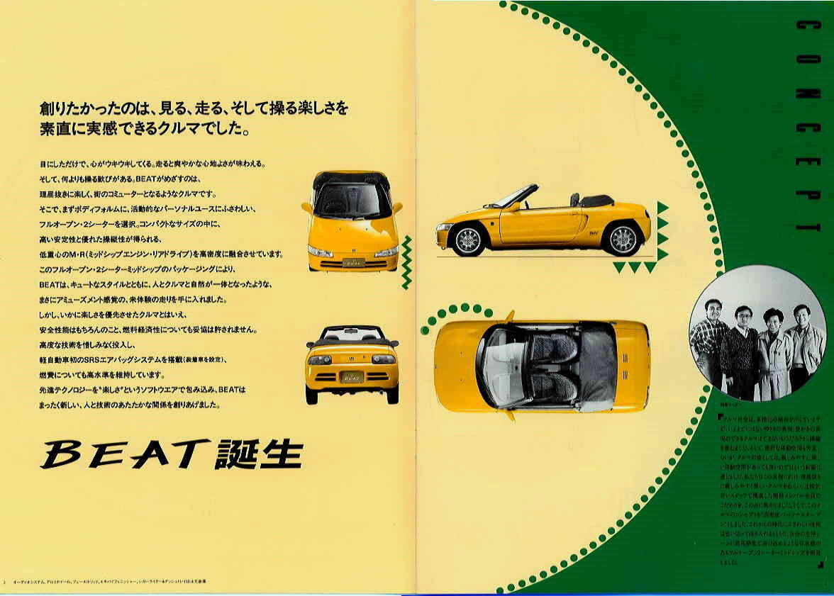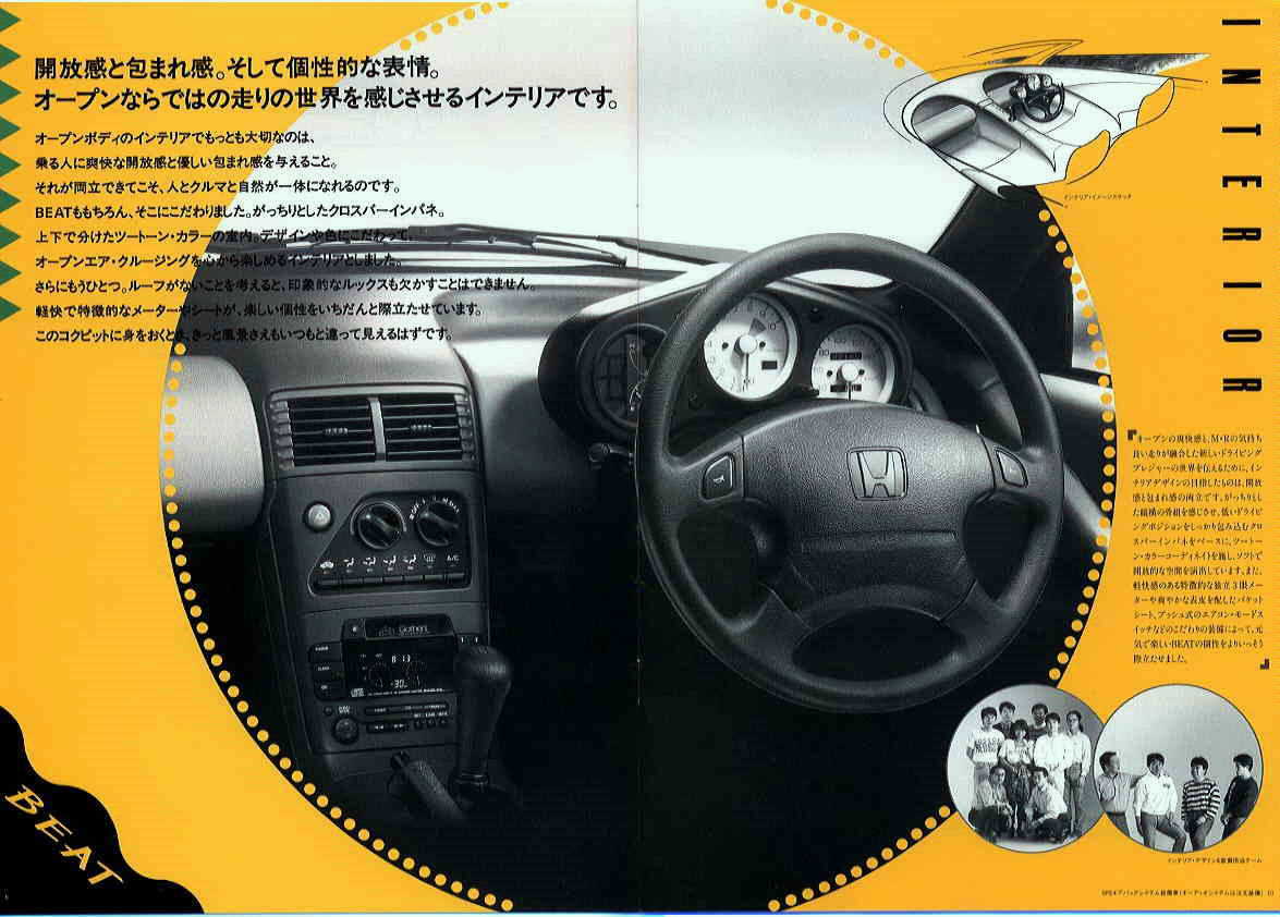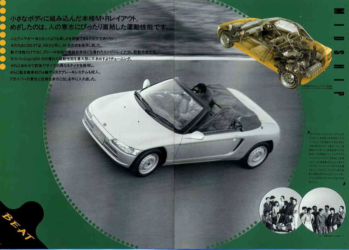 ビートの開発コンセプトを語っています。見辛いのですが左下には「オーディオシステム、アルミホイール、フューエルリッド、エキパイフィニッシャー、シガーライター&アッ