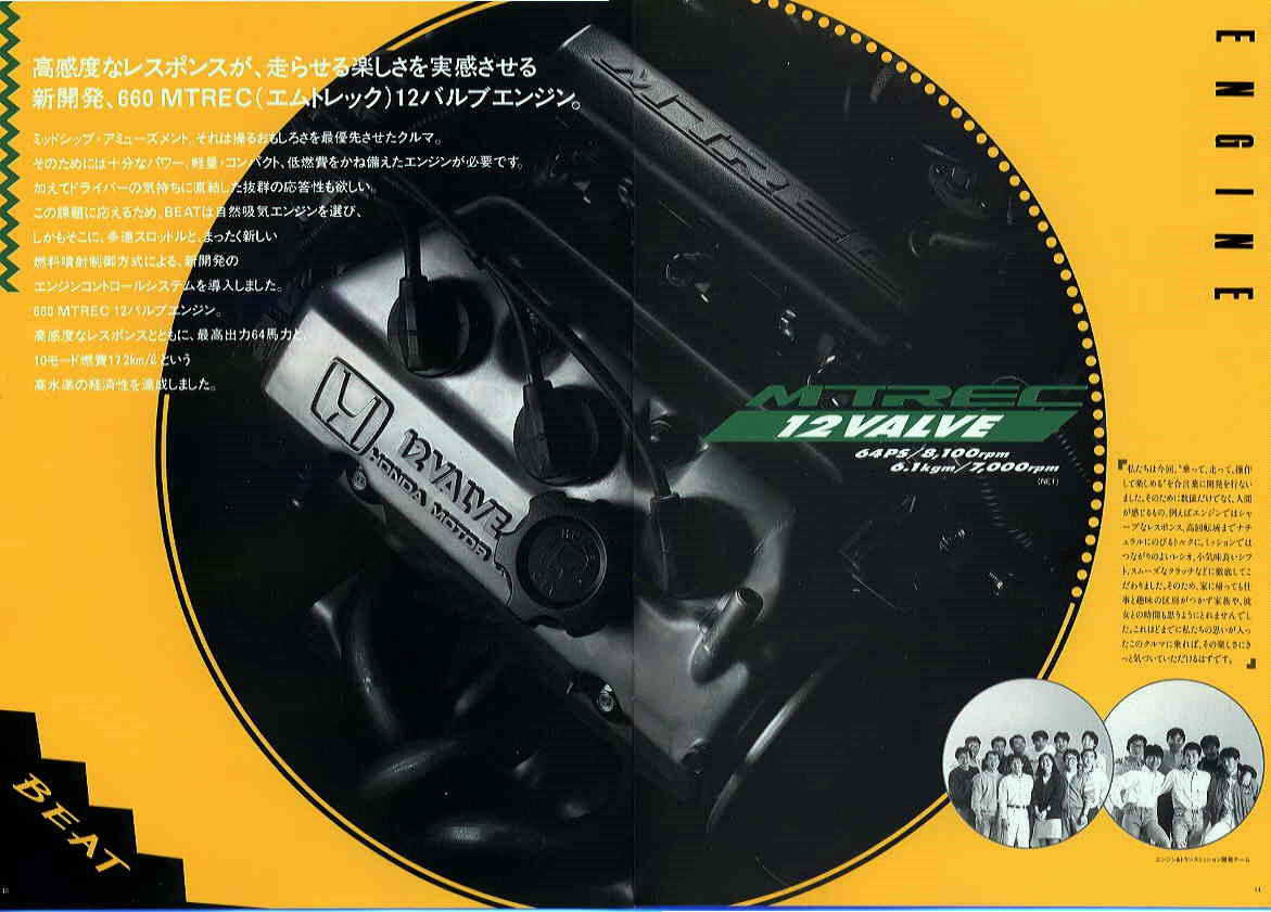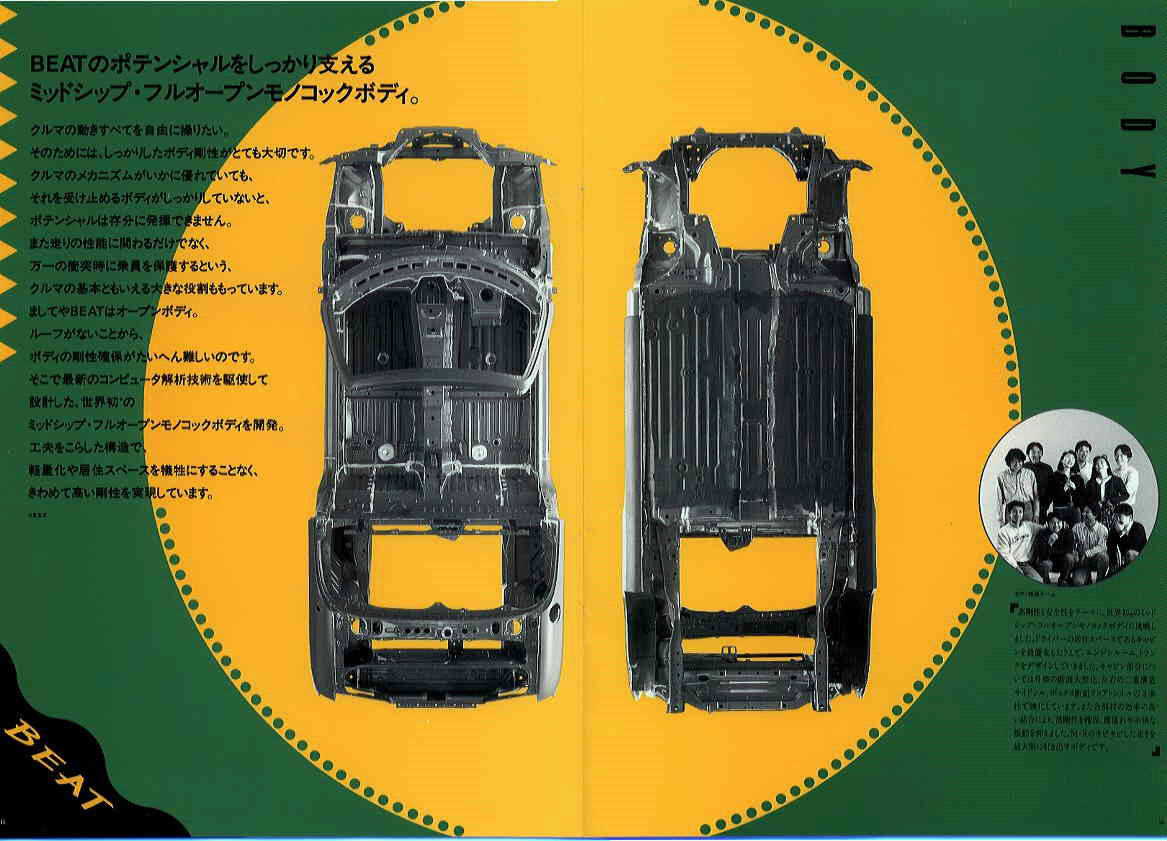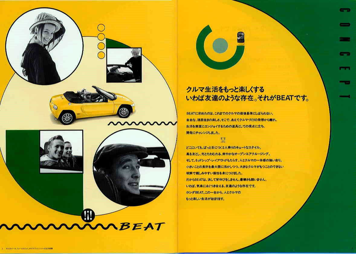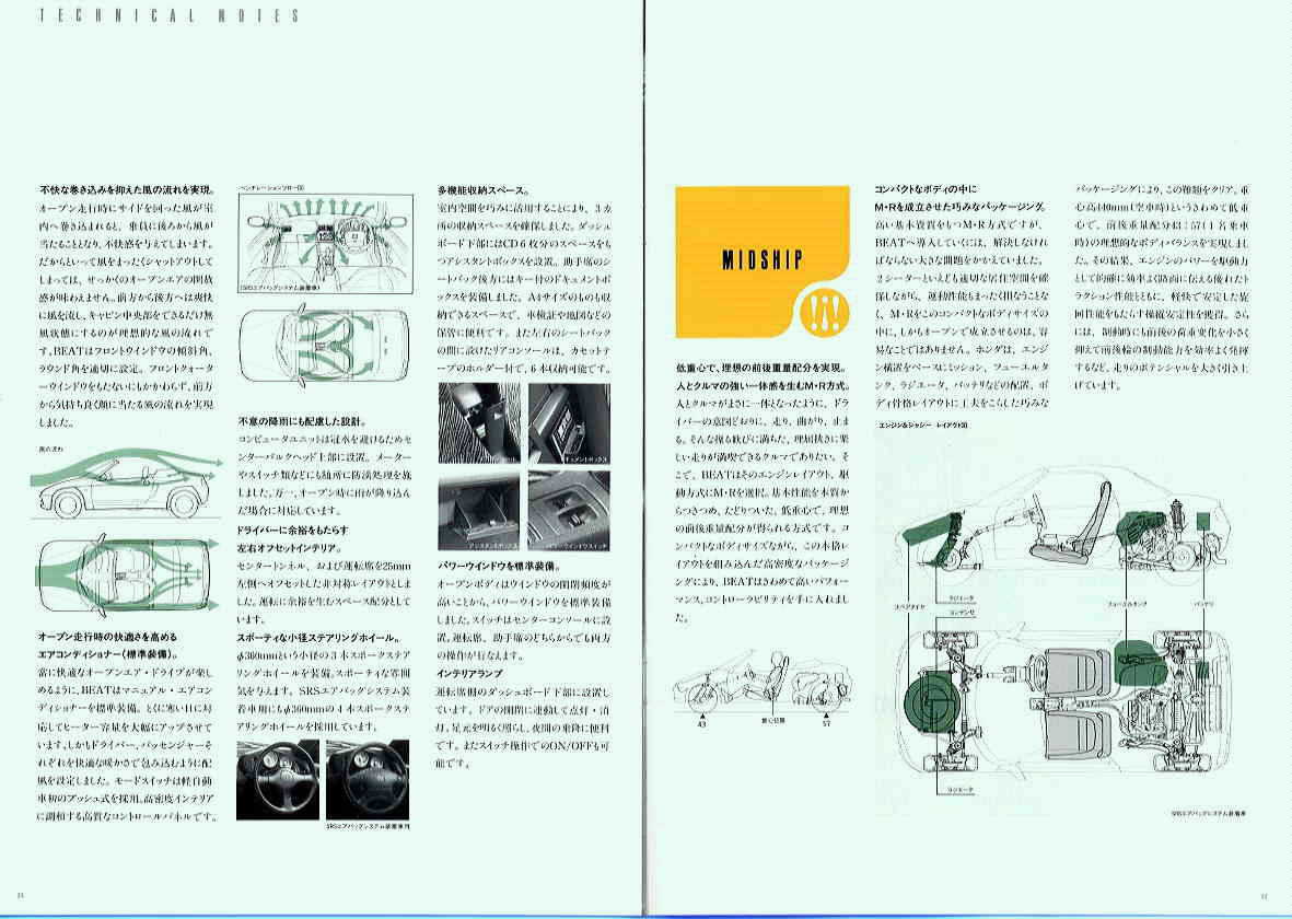 ビートの開発コンセプトを語っています。見辛いのですが左下には「オーディオシステム、アルミホイール、フューエルリッド、エキパイフィニッシャー、シガーライター&アッ