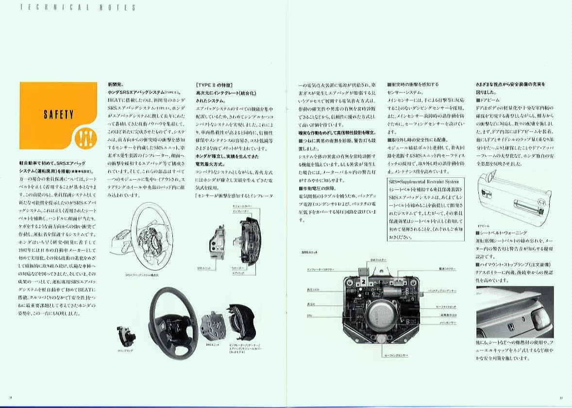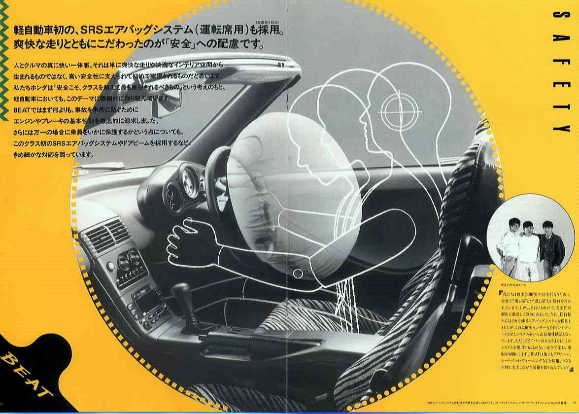 安全面を強調しています。やっぱりこの時代にオプションとはいえエアバッグ付き(例え気休めと言われても)の設定があったことは称賛に値するでしょう。 |
