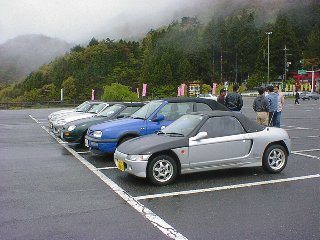 少し雨が途絶えた処で、すかさずオープンに。 我々のツーリングは、こうでなくては。