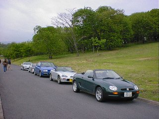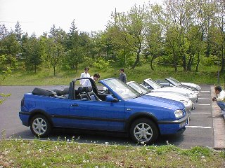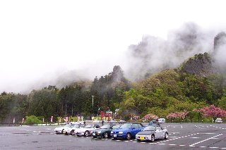 翌日の朝は前日とはうってかわって晴天に。 朝、駐車場にて雑談のひととき。