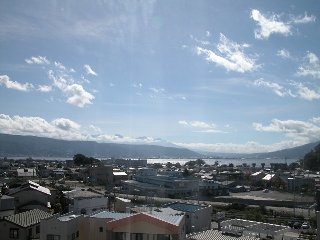 宿からの眺望、諏訪湖のすぐ近くでした。